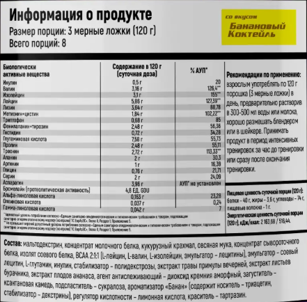 40 г белка, включая концентрат сывороточного и молочного белка, изолят соевого
